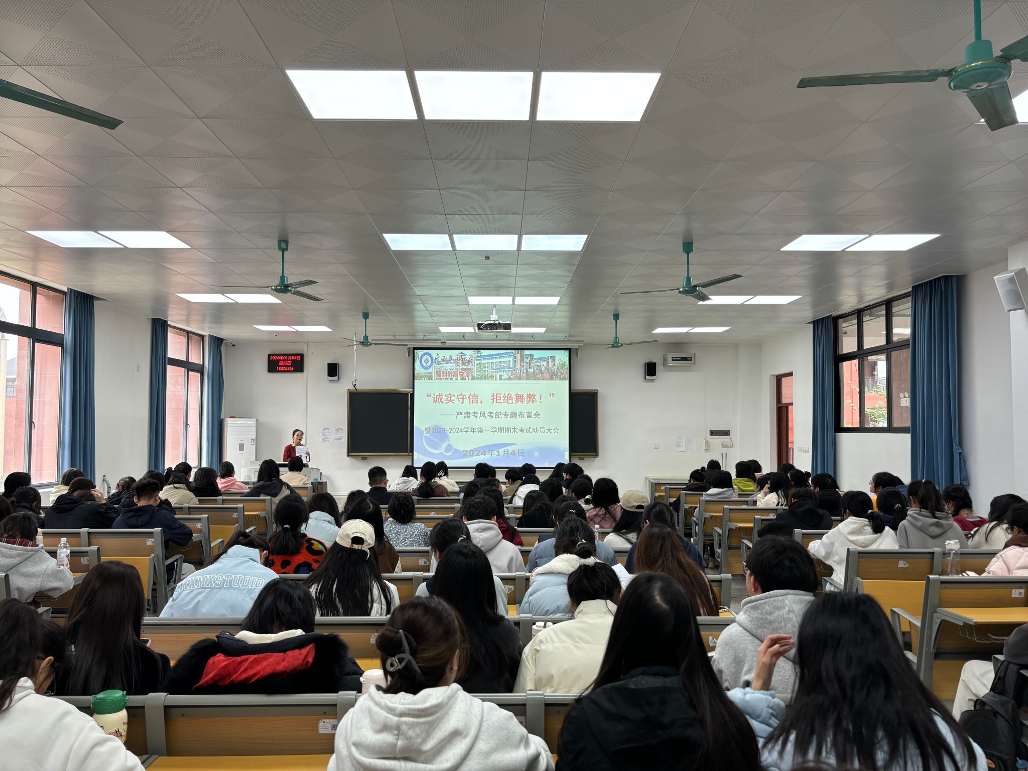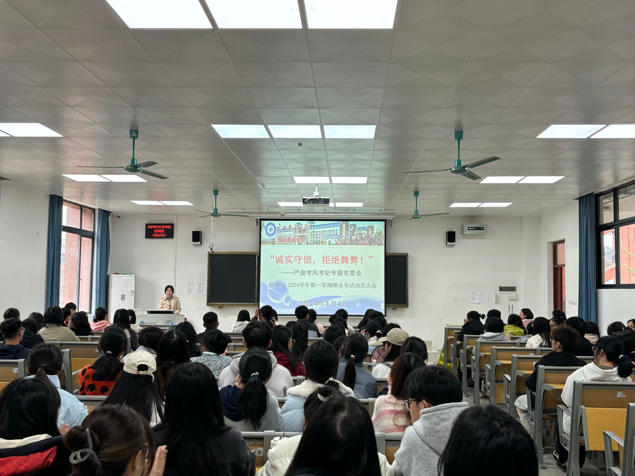 本次会议的召开,旨在树立良好考风,严肃考试纪律。同学们纷纷表示,在今后的考试中定会提升自律意识,自觉遵守考试纪律,诚信考试,拒绝舞弊。(初审:梁宇曦 编辑:莫济宁 校对:莫济宁 复审:韦德宗 终审:覃锐钧)
