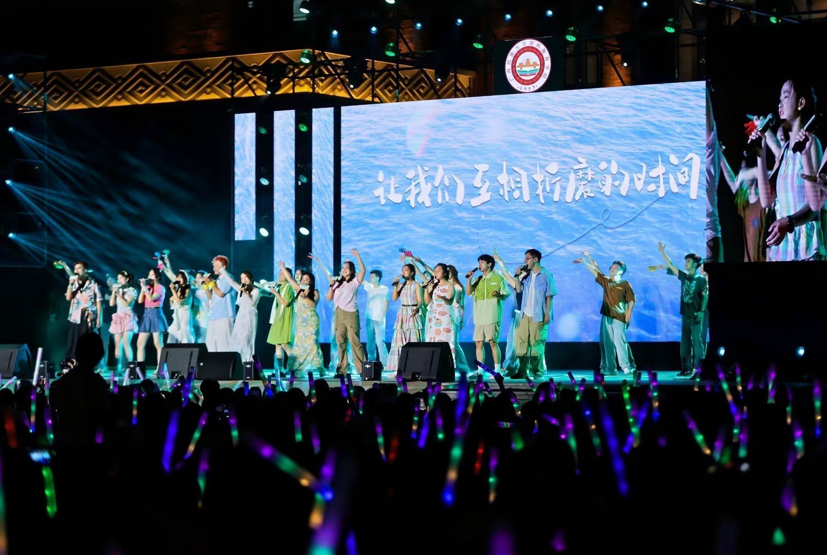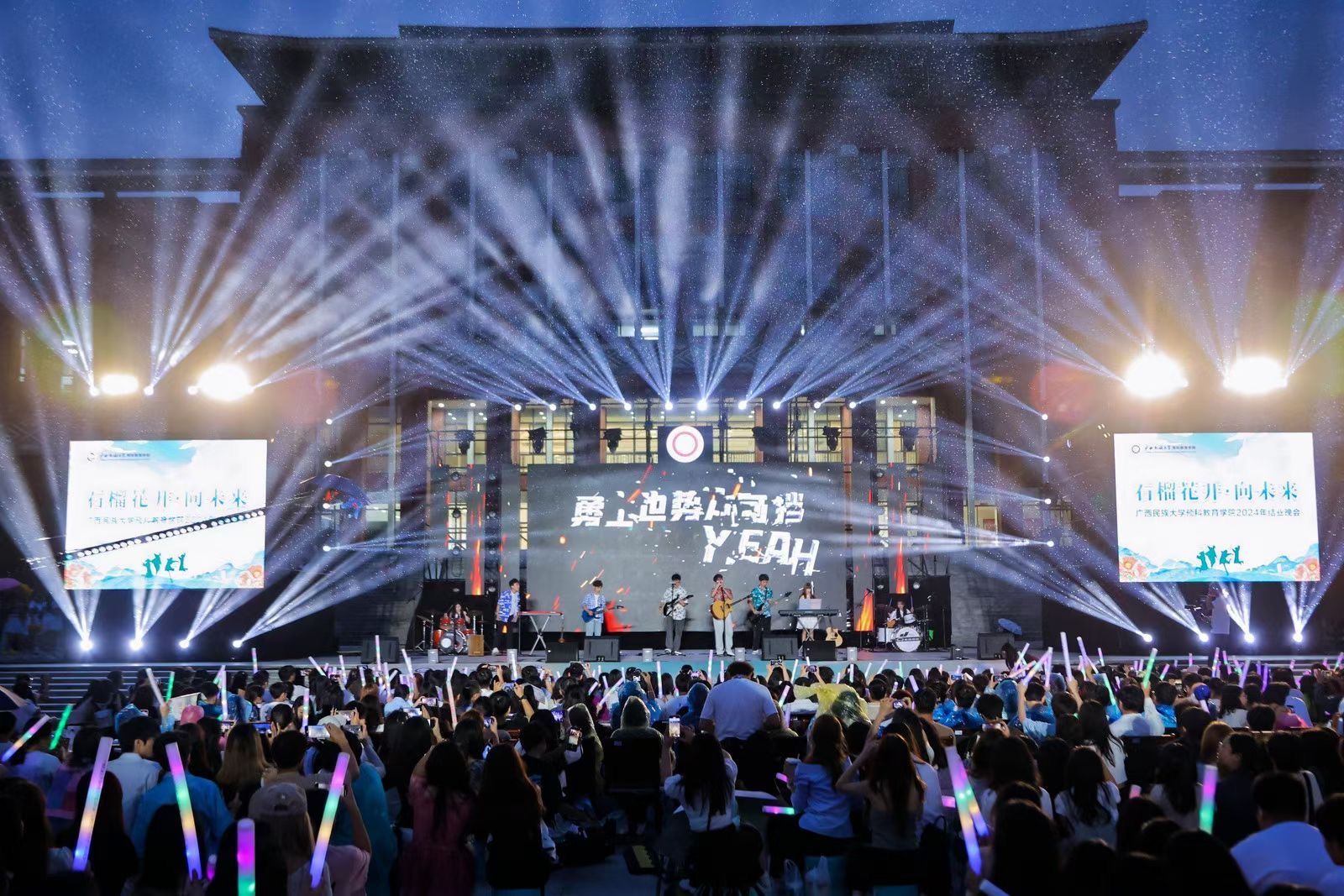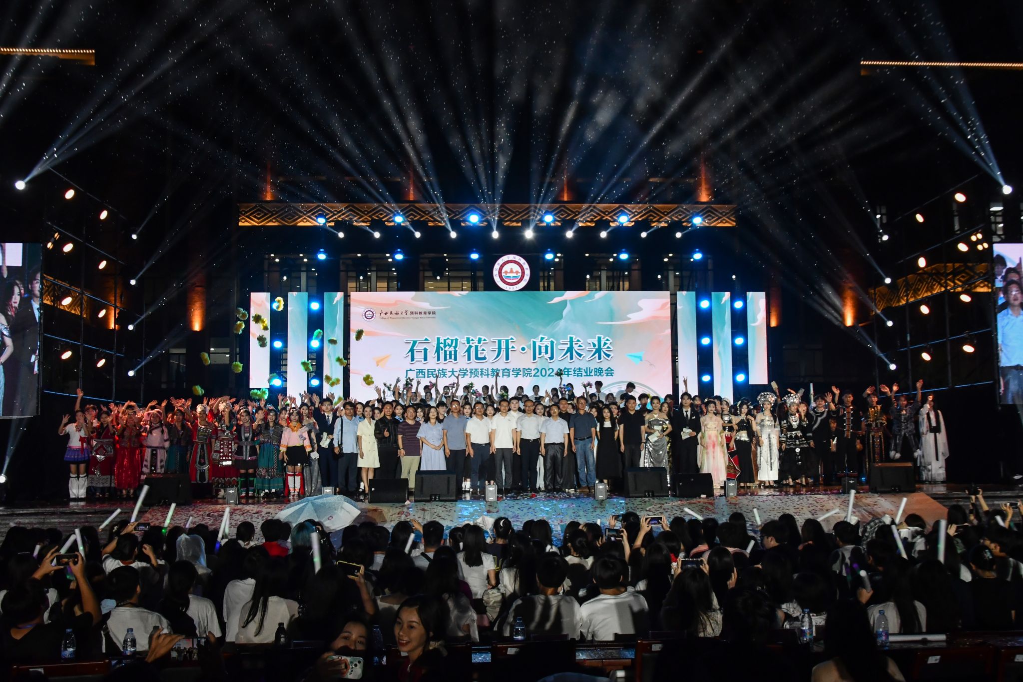 【大学生通讯社报道】5月18日晚,beats365亚洲版在武鸣校区厚德广场举行2024届“石榴花开·向未来”结业晚会。学校职能部门代表,beats365亚洲版全体师生及校友代表共赏晚会。
