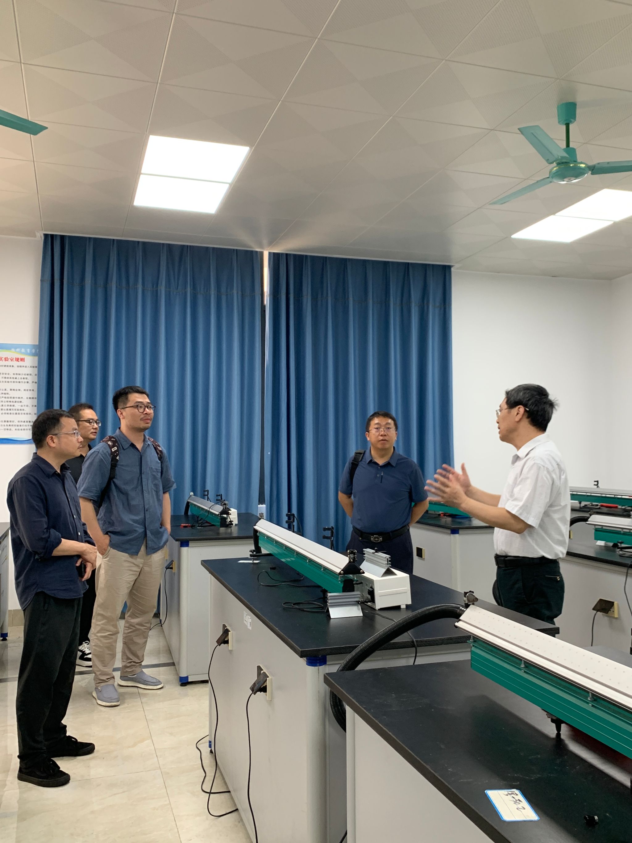 马廷强一行实地参观物理实验室、化学实验室、生物实验室、普通话测试中心、智慧教室、计算机实训室等教育教学场所,了解学院实验室的建设和使用情况。