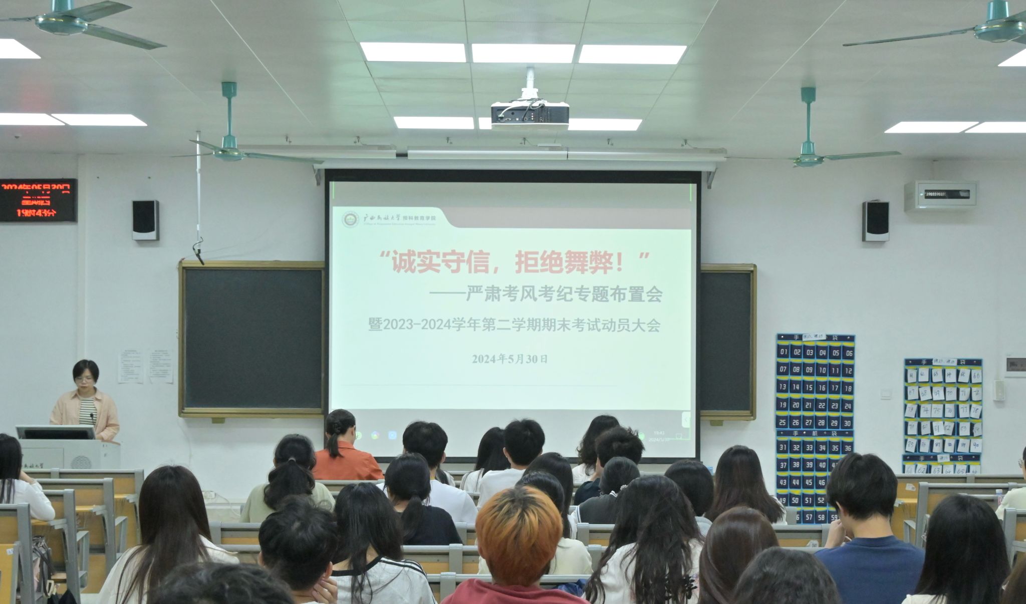 本次会议的召开,旨在进一步加强学风建设,严肃考风考纪,确保考试公平公正。同学们纷纷表示,在接下来的考试中定会做好自我约束,自觉遵守考试纪律,诚信考试,拒绝舞弊。(初审:梁宇曦 编辑:覃瑀 校对:覃瑀 复审:韦德宗 终审:覃锐钧)
