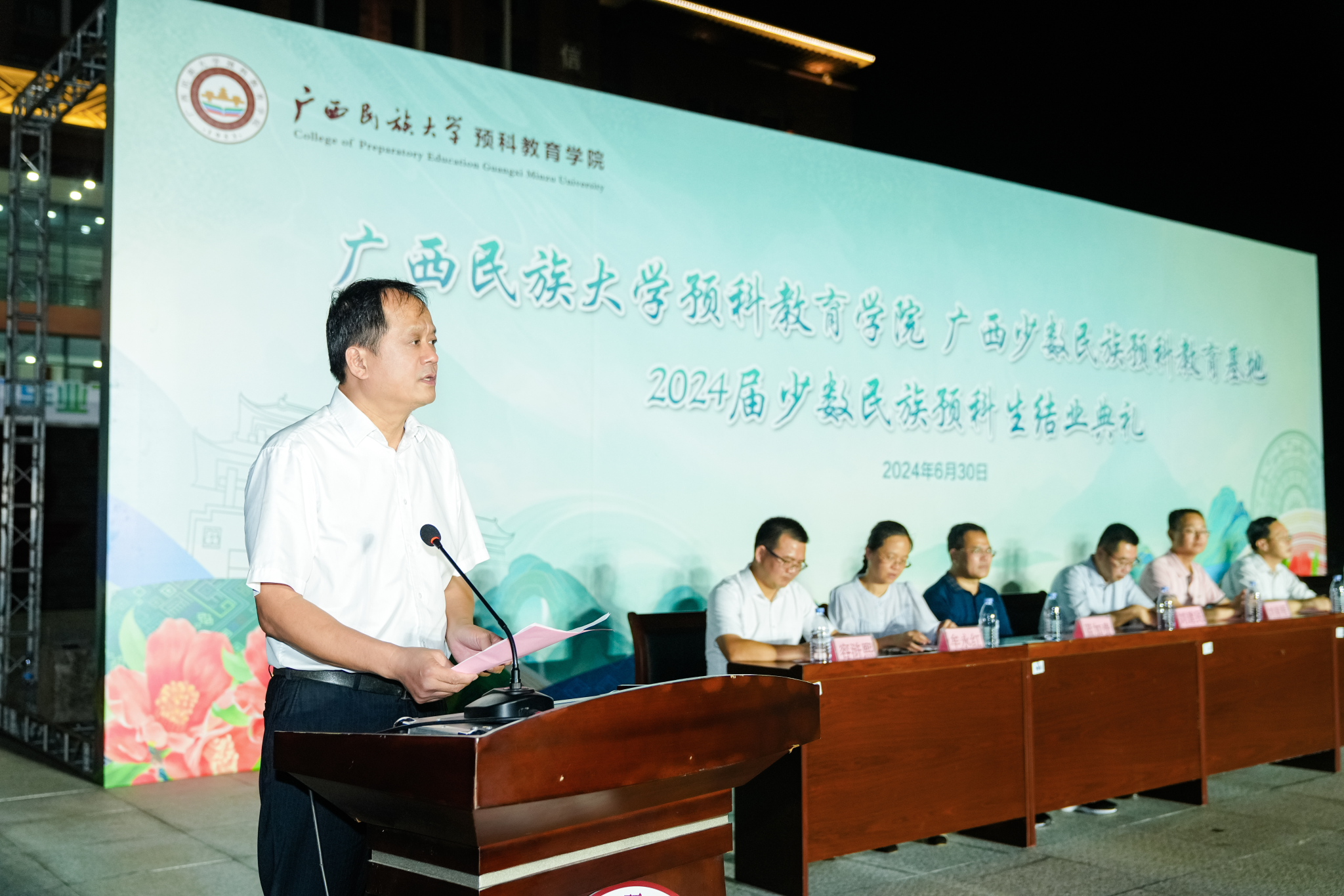 6月30日,广西民族大学beats365亚洲版在广西民族大学武鸣校区厚德广场顺利举办2024届预科生结业典礼。广西民族大学党委常委副校长蔡高根,有关职能部门负责人和学院领导、辅导员、班主任、教师代表和2024届结业生参加典礼。结业典礼由学院党委书记覃锐钧主持。