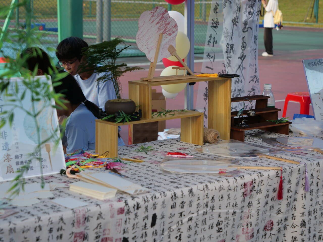本次活动,各班以中华优秀传统文化、少数民族文化为主题布置展会。一个个精致小巧的手工绣球在阳光下反射出耀眼的光彩,吸引了许多师生驻足观赏。技艺精湛的漆扇更是令人赞叹不,还有独具特色的蜡染和传统刺绣,简单而风趣的民族知识问答。同学们穿上本民族的服饰,向大家介绍自己的民族家乡。展会上,同学们创意十足,有的则用易拉罐做的头冠,阳光洒在银白色的头冠上,优雅而庄重。会场热闹非凡,人山人海。中华传统文化博大精神,各民族文化独具魅力,在此次文化展上展现得淋漓尽致。