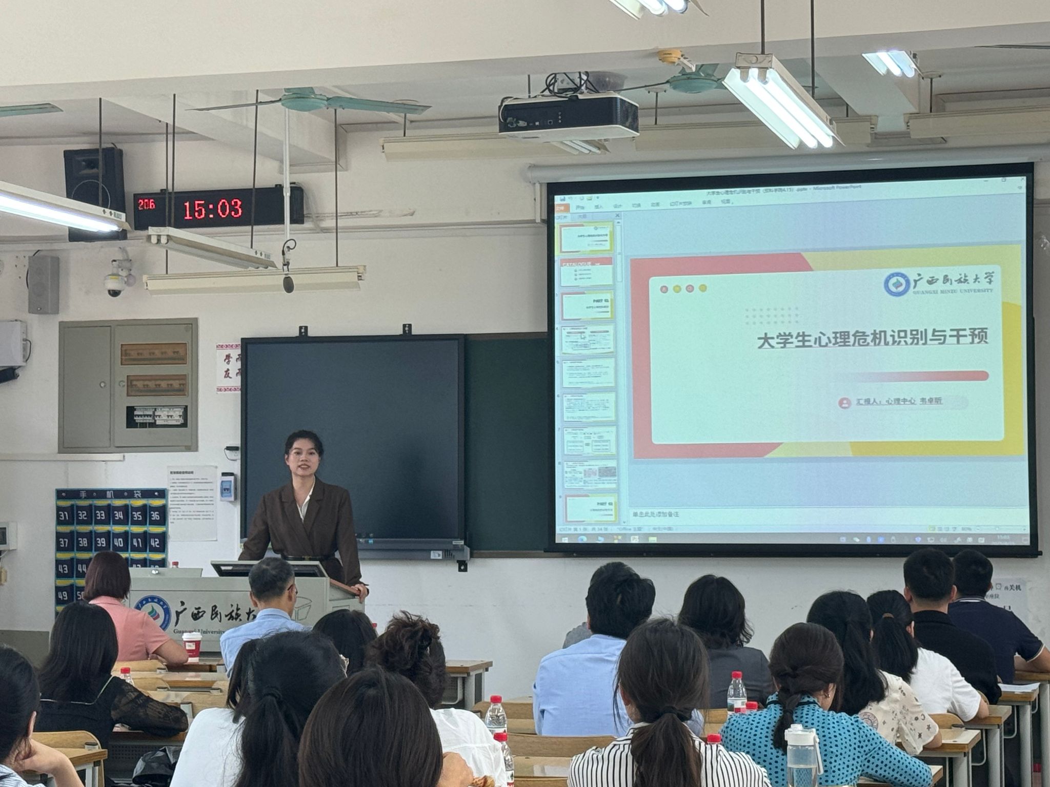 4月15日下午,beats365亚洲版组织全体教职工在相思湖校区206教室开展大学生心理危机识别与干预培训,由学校心理中心教师韦卓昕主讲。