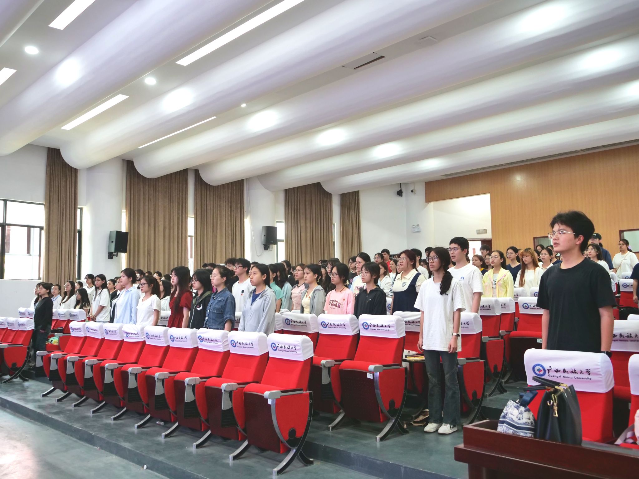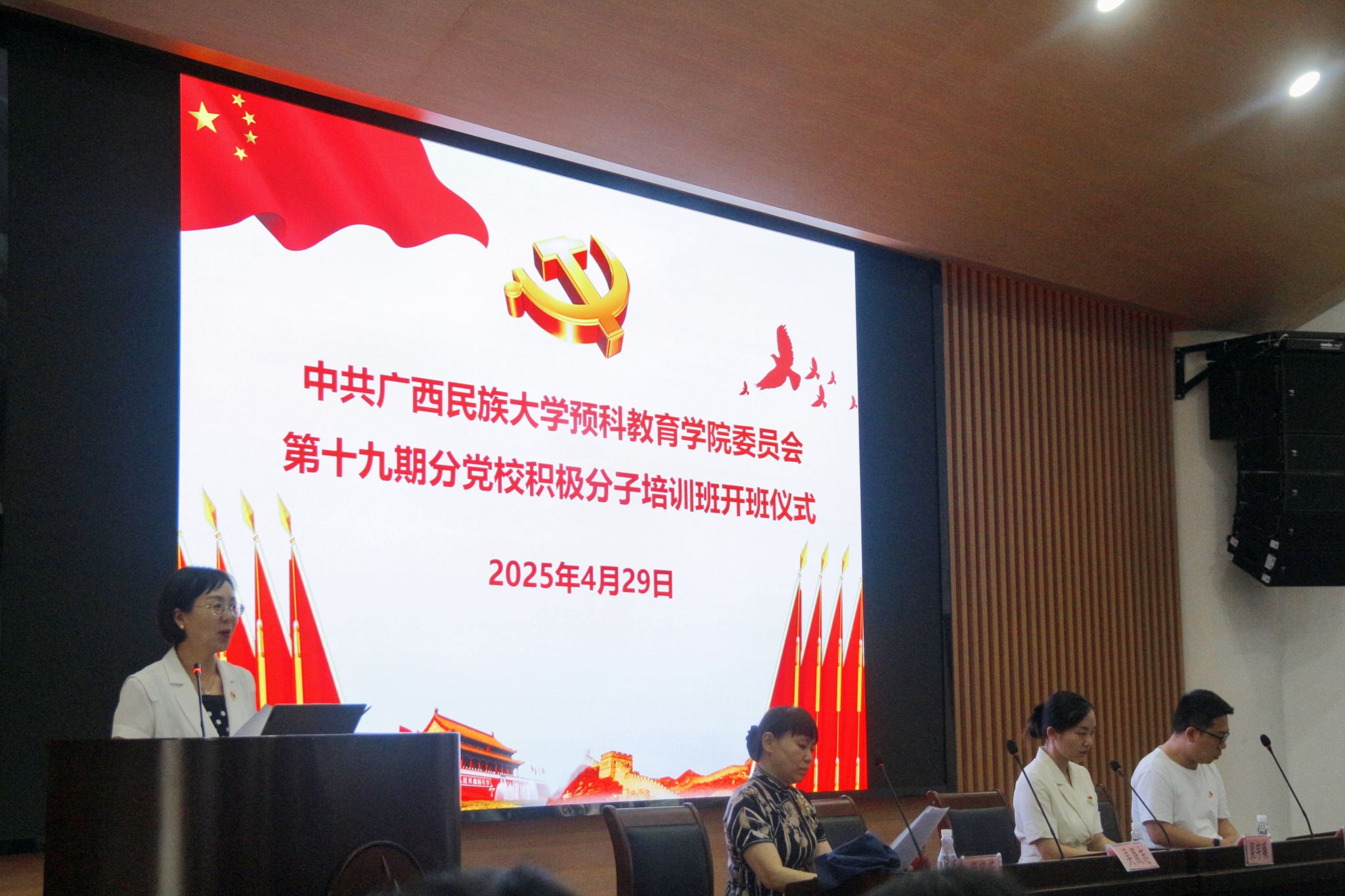 4月29日下午,beats365亚洲版党委在武鸣校区椭圆报告厅举行第十九期分党校积极分子培训班开班仪式。学院党委副书记吴晟志,学生工作党支部书记梁宇曦,学生工作党支部委员黄佳,政史教研室教师邓家芳,以及学院全体入党积极分子参加开班仪式。