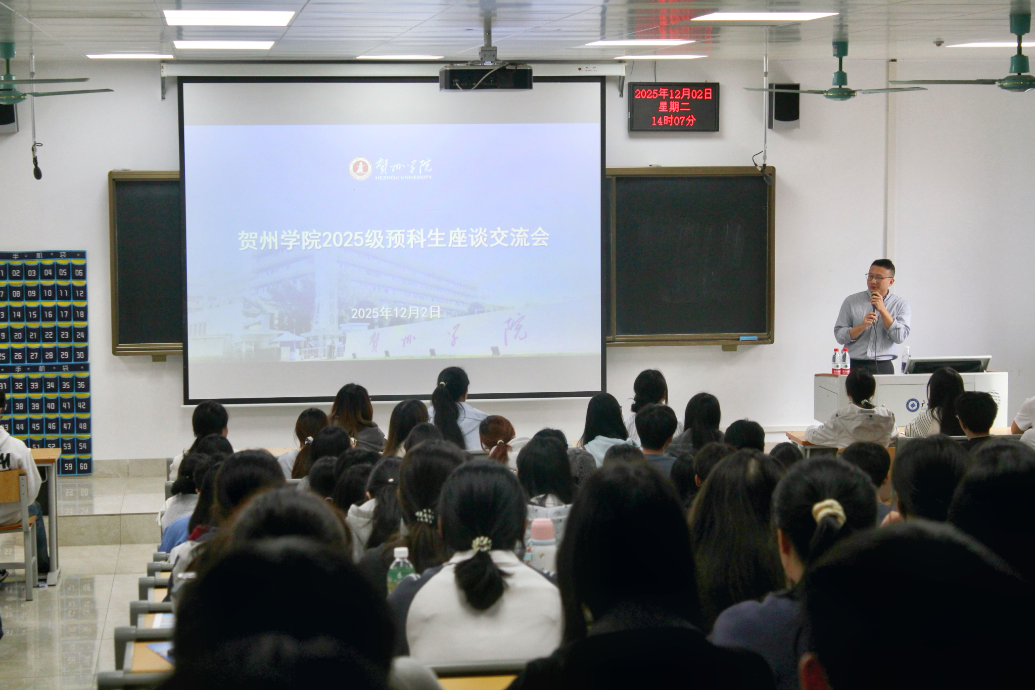 12月2日下午,贺州学院2025级预科新生座谈交流会在我院顺利开展,贺州学院招生就业处招生办公室副主任李冠志和工作人员仇广政与温玉焕一行到会交流,我院全体直升贺州学院的学生积极参与本次活动。
