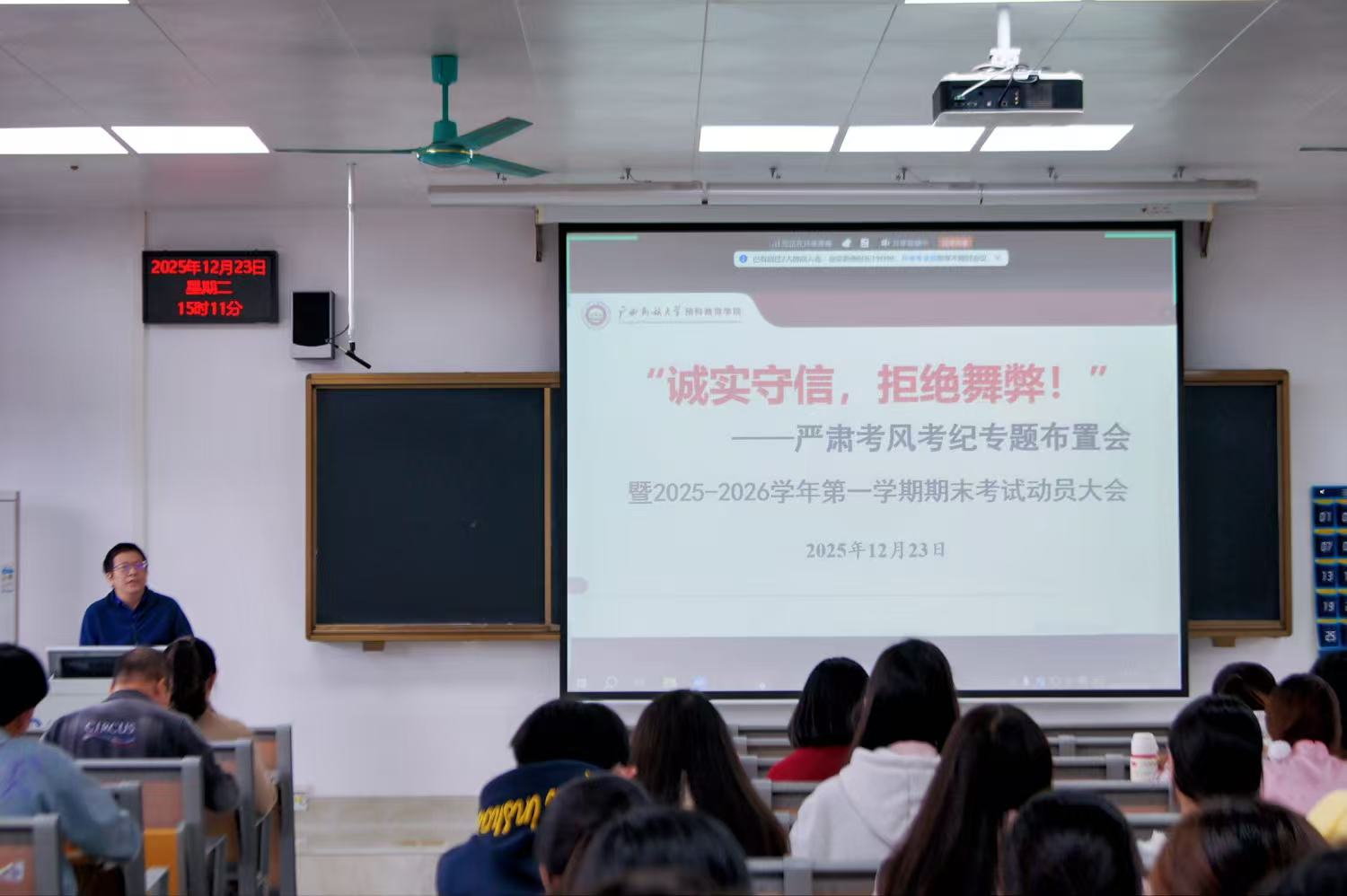 本次动员大会强化了学生的诚信意识和纪律观念,引导学生树立正确的考试观和价值观。学院将持续营造严肃、规范的考试氛围,为学生成长奠定坚实的人格基础。(初审:梁宇曦 编辑:兰胜胜 校对:曾蓝灏 复审:刘红军 终审:覃锐钧)