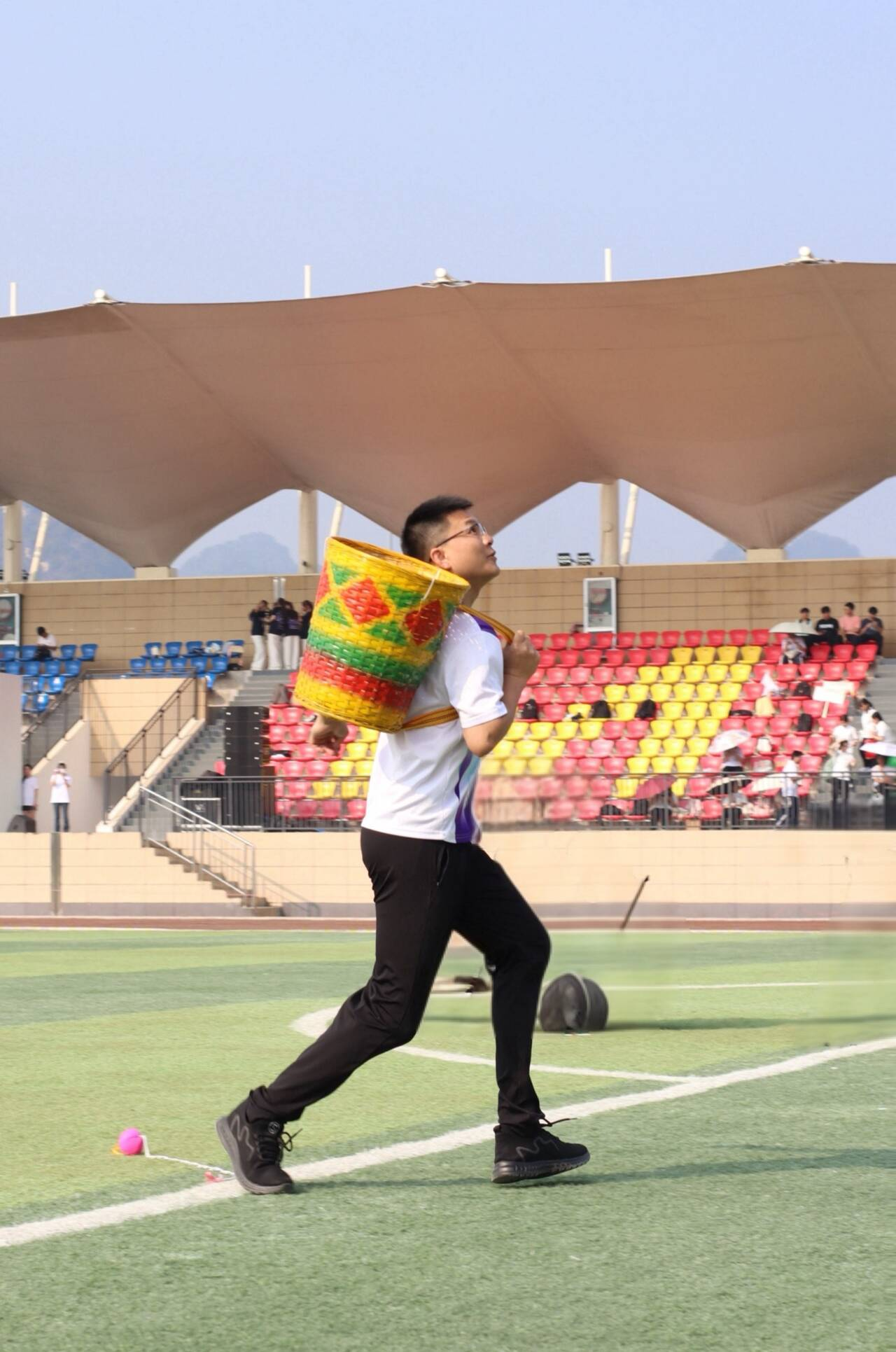 运动会赛程为期两天,竞赛项目分为田赛、径赛及民族体育三大类别,下设教工组与学生组。开幕式上,各班级方阵精神抖擞,步伐整齐,展现出预科学子昂扬向上的精神风貌。赛事首日,教工组比赛率先掀起高潮。老师们在一百米跑、跳远、铅球、抛绣球、三人板鞋等项目中默契配合、奋勇争先,现场加油声与欢笑声此起彼伏,展现了课堂之外的活力与风采。径赛场上学生组的运动员们竞争激烈,百米短跑选手如离弦之箭,展现速度与爆发力;中长跑运动员则凭借坚韧的毅力与稳定的节奏,在赛道上挑战自我极限。田赛区域同样精彩纷呈:跳高选手一次次跃过新高度,划出优美弧线;跳远健儿助跑、起跳、落地,动作连贯有力;铅球投掷区不时传来喝彩,铅球划出一道道力量与技巧结合的轨迹。作为学院特色,民族体育项目备受关注。三人板鞋竞赛考验团队协调,选手们步伐统一、齐声呐喊冲向终点;“八字”长绳项目中,队员们穿梭跳跃,配合娴熟;背篓绣球比赛更是妙趣横生,投手与接球手之间默契十足,五彩绣球在空中划出优美抛物线,引来阵阵掌声。